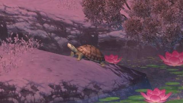 今は亀も金の鯉もいなくて普通の鯉が泳いでるだけで、蓮もまだツボミですね。