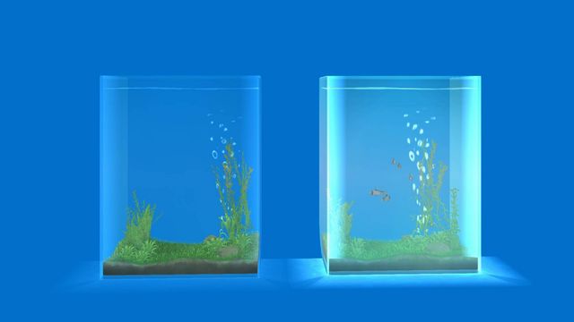 水槽を重ねて一つに水槽に複数入っているように見せる、っていうテクニックはあります。
