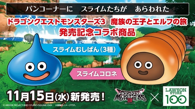 スライム、ベス、メタルの3種のむしぱんとモンスターズ3に登場するスライムコロネのチョココロネがコラボ商品として15日から発売!ってことで