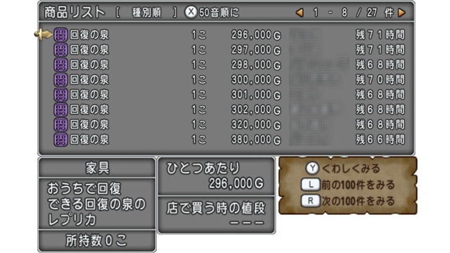 (記事書き終えた後に見たら家具のほうの回復の泉が38万ゴールドに)