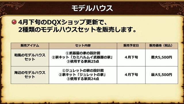 今回発売されるのは和風のモデルハウス(カミハルムイ武器屋の家)セットと海辺のモデルハウス(ジュレットの家)セットのふたつ。