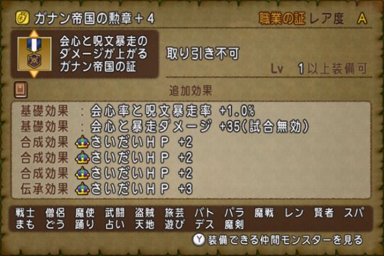 ガナン帝国の勲章は合成効果も追加効果も他につくものがありますけど、ほとんどのひとがHP選ぶんじゃないかなって思います。