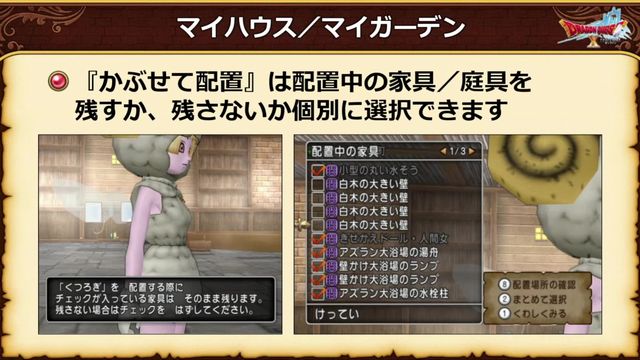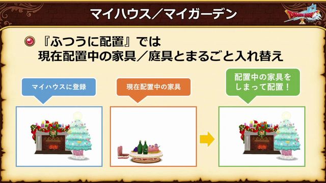 一応確認しとくと家具とか庭具とかの配置状態を記憶させておくと、一発配置できちゃう機能ですね。