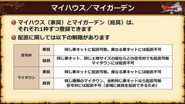 マイハウスとマイガーデンはそれぞれ1枠ずつしか登録枠がないってこと。